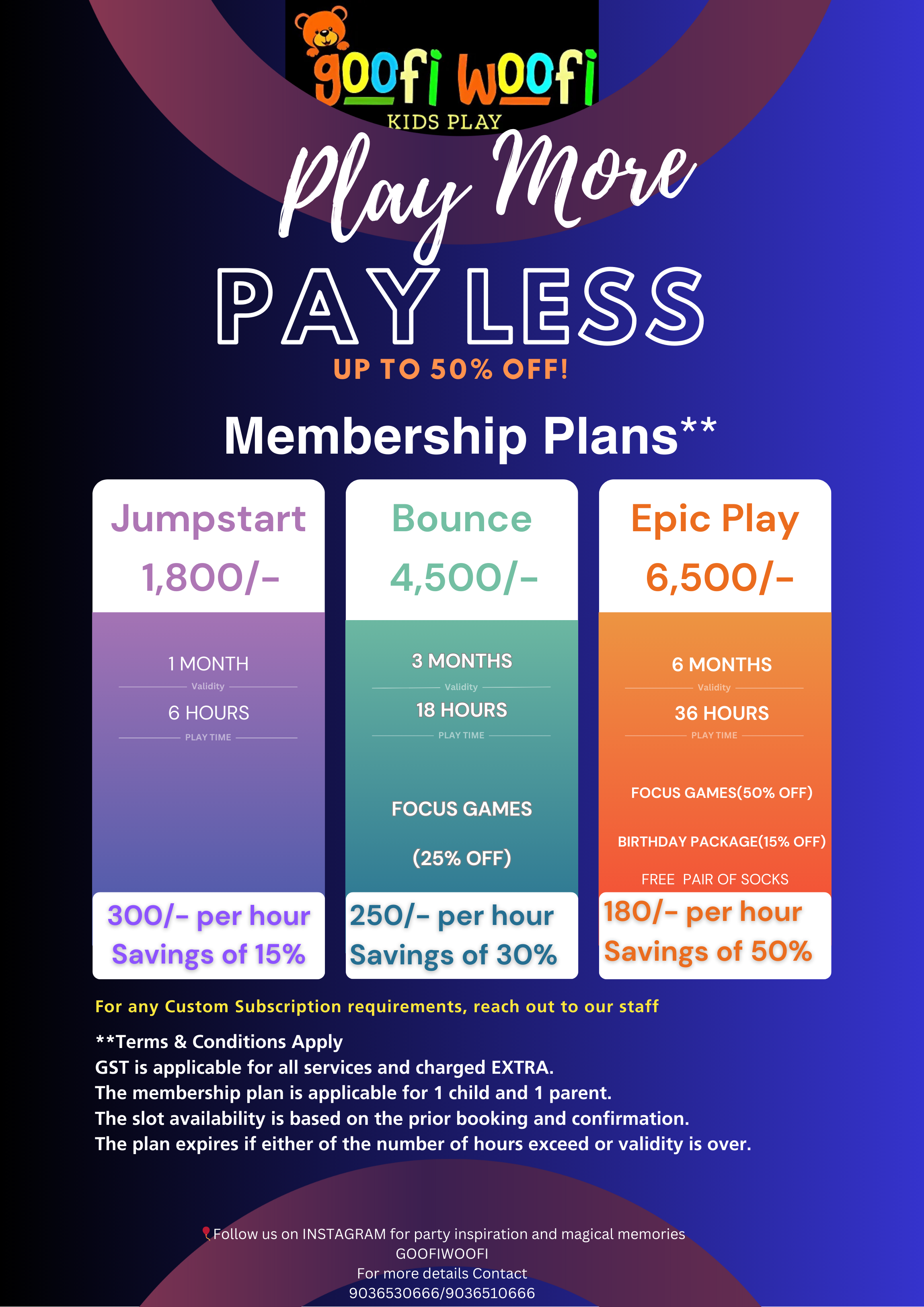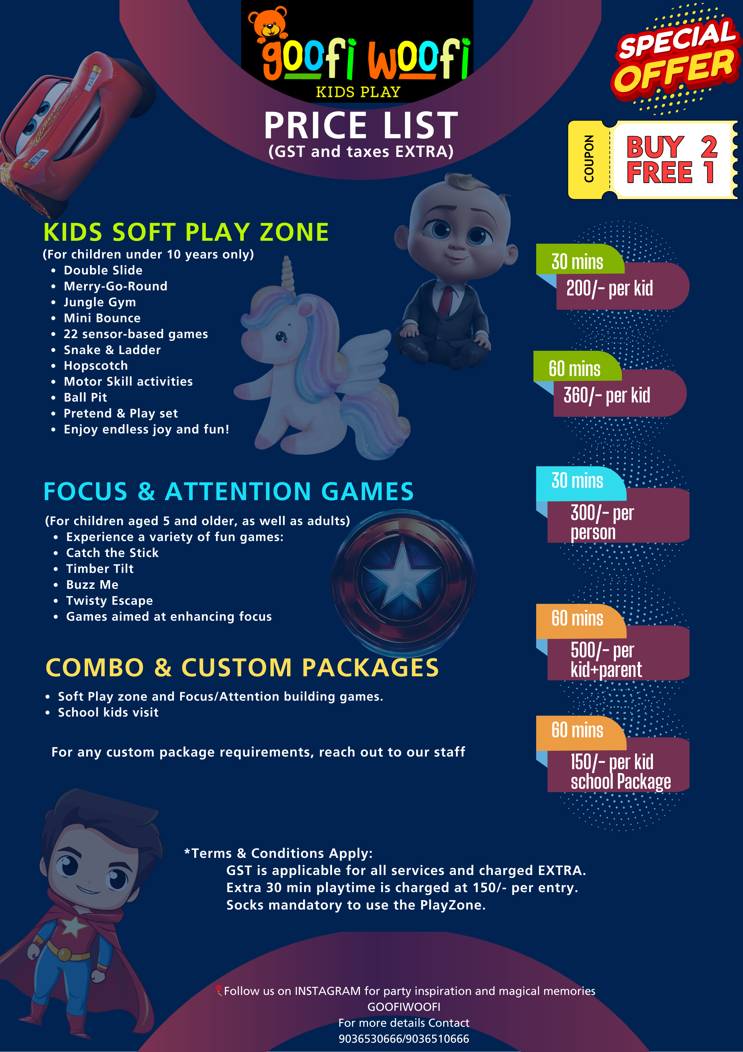 My kid had a wonderful time at goofi woofi. The play area is well planned with a lot of games and attractions to keep kids hooked.